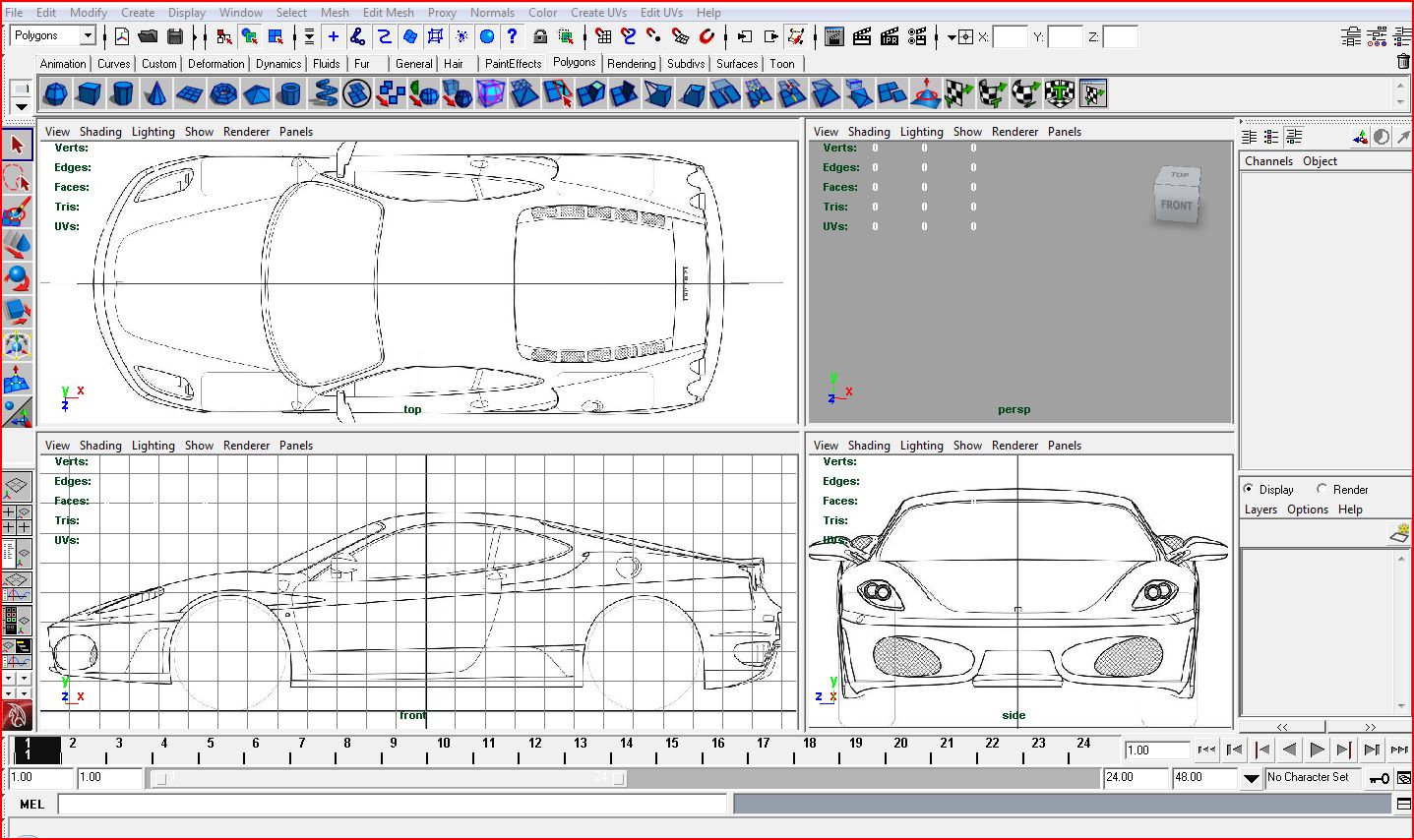 - Convertire da nurbs a poligonale - Dopo aver modellato la macchina in nurbs si procede alla sua