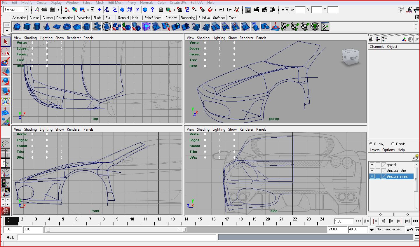 struttura di nurbs per il paraurti, uno per il cofano, uno