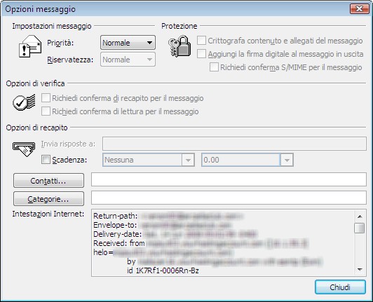 analizzando il percorso compiuto dal messaggio (intestazioni Received)