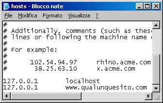 file di testo, in fondo ad esso aggiungere 127.0.0.1 seguito da uno spazio e