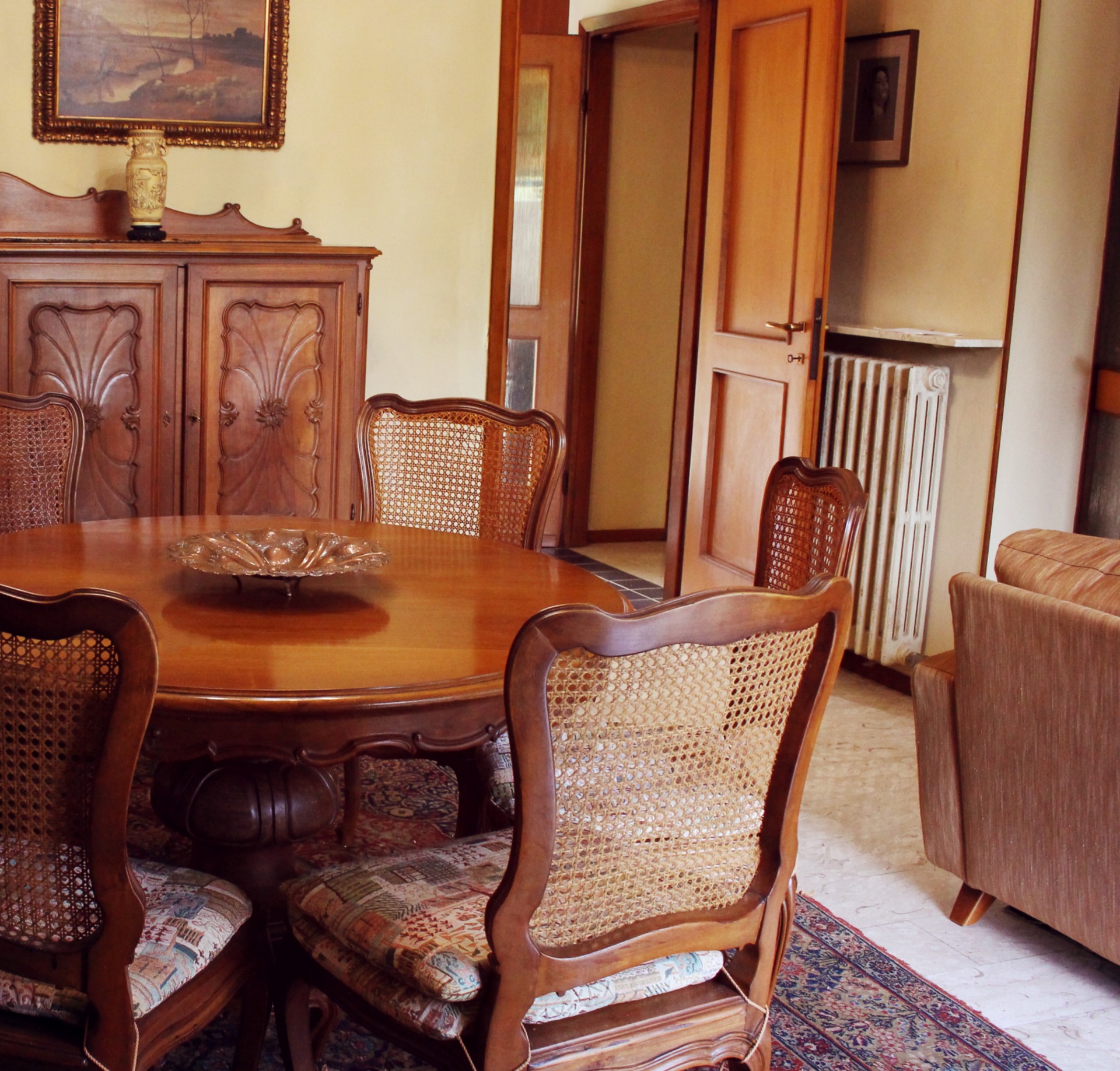 Soggiorno ampio ed elegante in grado di ospitare tavolate con svariati invitati e di vivere la giornata in estesi spazi di relax, svago e lavoro.